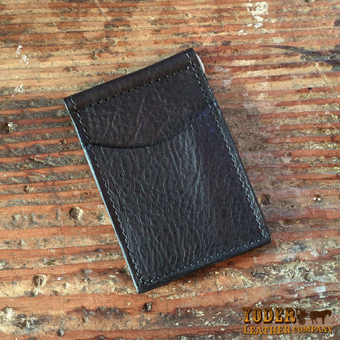 This wallet is made with beautiful authentic American Bison that is tanned black. Sometimes Bison is referred to as Buffalo. It is stitched with heavy duty nylon thread that matches the color of the leather.
