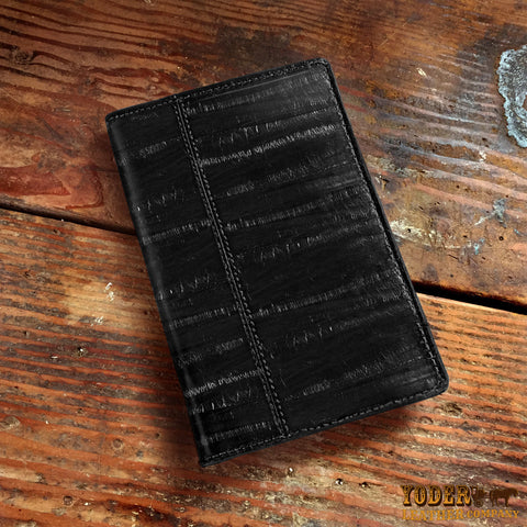 This padfolio is made with black tanned Pacific Eel and crafted in the USA. This case will last for years and offers a unique look that stands out from the generic portfolios you could purchase from an office supply store.