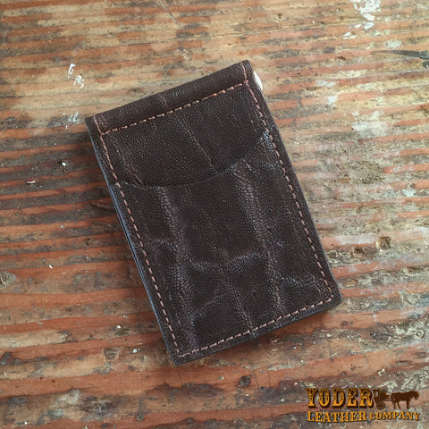This wallet is made with beautiful authentic African Elephant skin that is tanned Dark Brown. It is stitched with heavy duty nylon thread that matches the color of the leather.