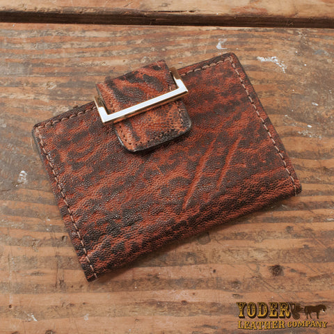 This wallet is made with beautiful authentic African Elephant skin that is dyed in a dragon fire pattern. It is stitched with heavy duty nylon thread that matches the color of the leather.