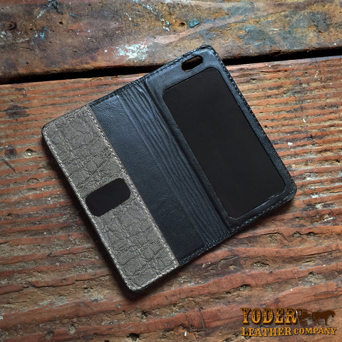 Our Amish craftsmen take their time and craft each one of these premium elephant hide iPhone cases by hand using leather techniques handed down for hundreds of years.