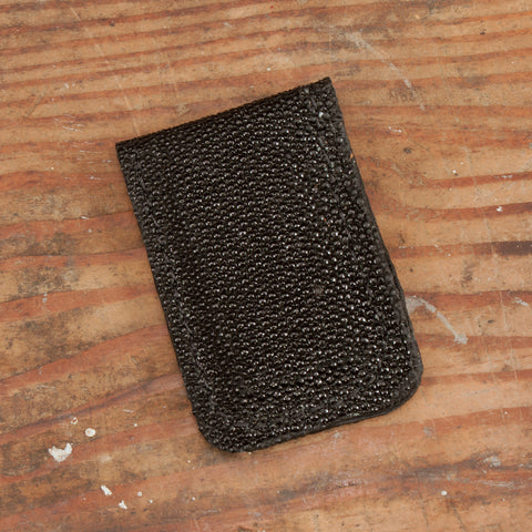 This money clip is made from Genuine Stingray Leather. Our money clips are handcrafted from the highest quality stringray available. Each stringray skin we acquire comes from a tannery that purchased the skin from legal harvesters.
